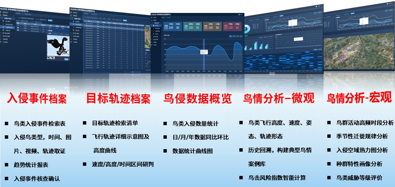 • 鳥情數(shù)據(jù)深度挖掘與特征比對(duì),打造特色化鳥情分析板塊,建立特征比對(duì)庫(kù),助力構(gòu)建鳥群活動(dòng)畫像,實(shí)現(xiàn)從源頭化解空域安全風(fēng)險(xiǎn),助力機(jī)場(chǎng)建立“事前預(yù)警、事中攔截、事后溯源”的全流程主動(dòng)防護(hù)機(jī)制。